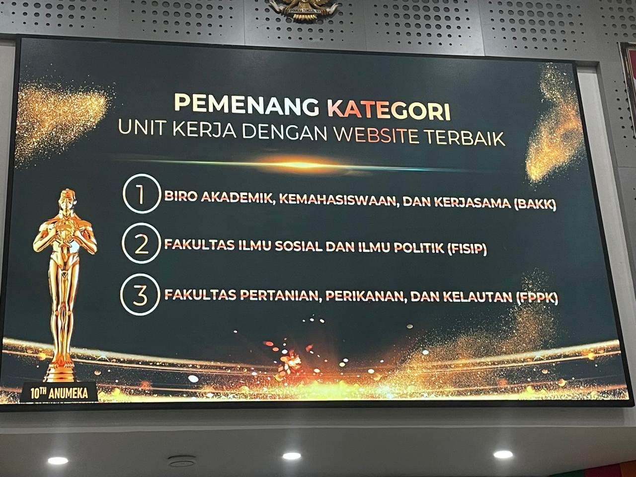 Pengumuman pemenang kategori Unit Kerja dengan Website Terbaik pada Anumeka UBB 2026: BAKK (Juara I), FISIP (Juara II), FPPK (Juara III). (Dok. FISIP UBB)